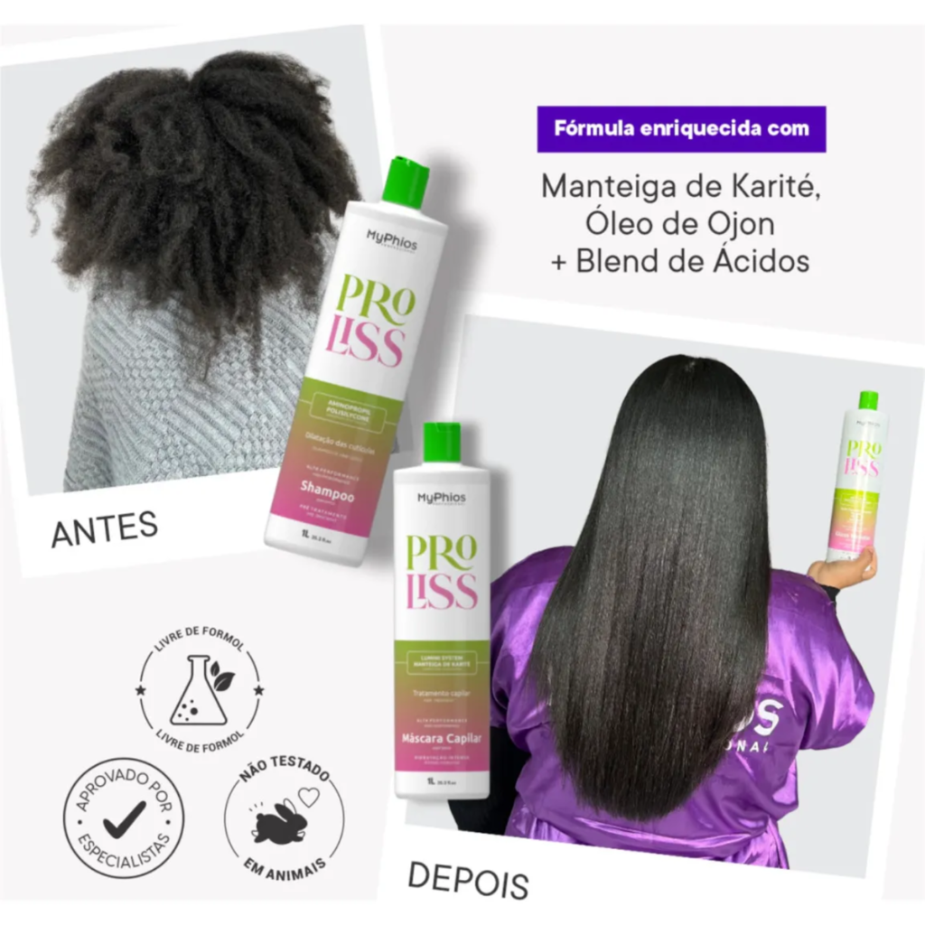 Realinhamento Proliss 3D Myphios - Cabelo liso, sem frizz, hidratado e com brilho tridimensional.