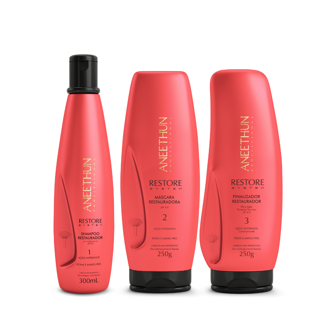 KIT RESTORE SYSTEM SHAMPOO MASCARA E FINALIZADOR - ANEETHUN