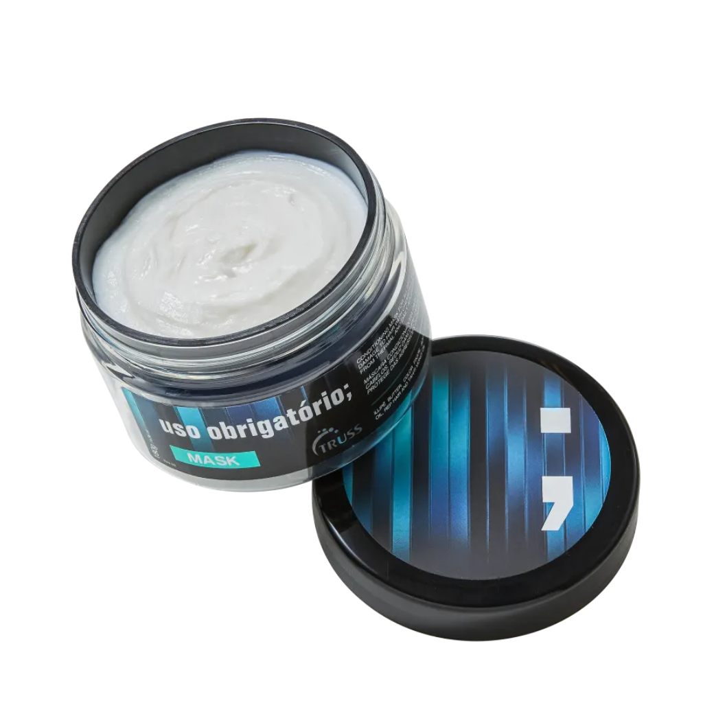 A Máscara Capilar Truss Uso Obrigatório Mask possui alta concentração de ativos, que auxiliam na reposição lipídica da fibra capilar. Sua fórmula hidrata, reconstrói e reduz os danos em cabelos com química.